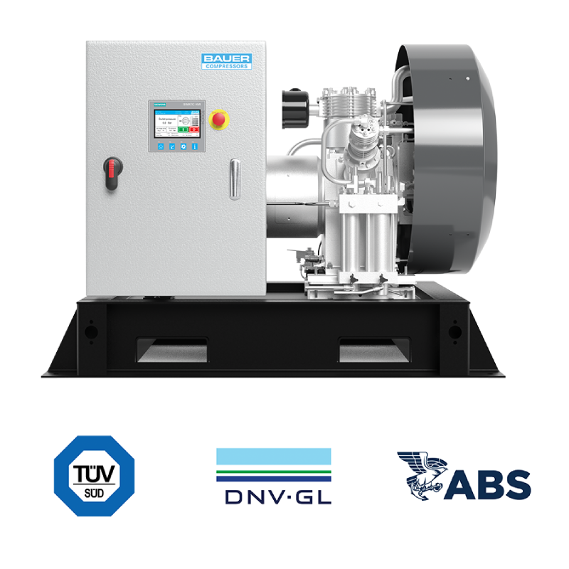 Compresores de 2 o 3 etapas, refrigerados por aire, diseñados para presiones finales de hasta 1,450 psig (100 bar). Ideales para aplicaciones industriales, navales y energéticas. Ofrecen alta fiabilidad, bajo consumo de aceite, intervalos largos de mantenimiento y opciones de monitoreo avanzado.